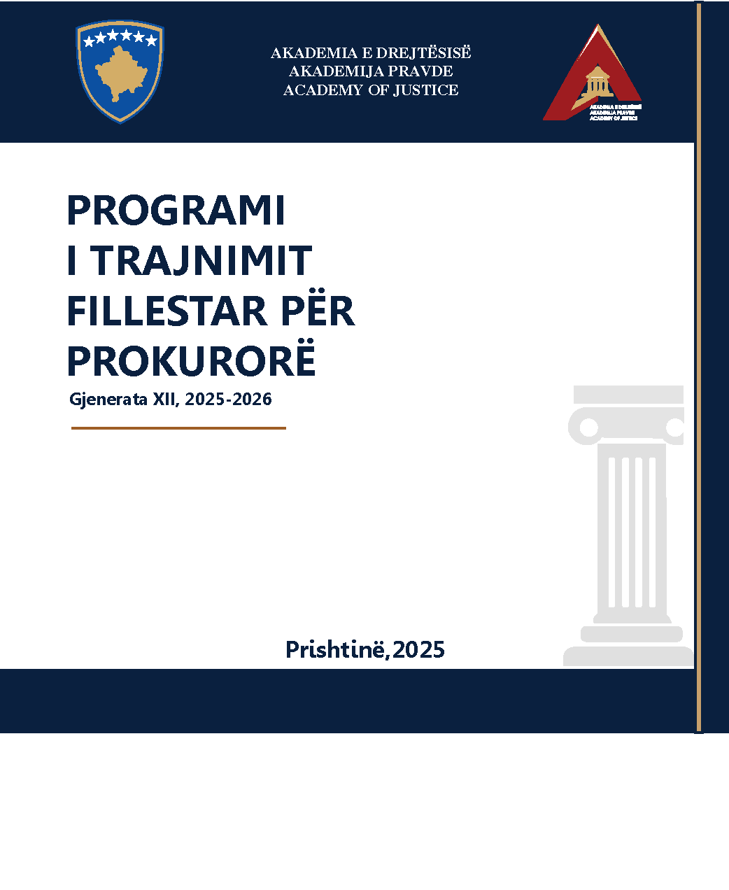 Programi i Trajnimit Fillestar (PTF) për prokurorët të sapo emëruar ka për qëllim zhvillimin e kapaciteteve profesionale dhe shkathtësive praktike të gjyqtarëve dhe prokurorëve të shtetit të sapo emëruar. PTF zgjatë 12 muaj dhe struktura e tij është e ndarë në dy pjesë: trajnimi teorik i cili realizohet i kombinuar me shqyrtime të rasteve nga praktika gjyqësore, simulime dhe forma tjera ndërsa pjesa praktike realizohet në gjykata dhe prokurori ku ata janë emëruar nën mbikëqyrjen e mentorit.